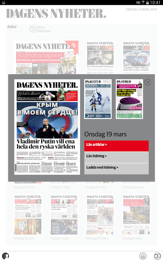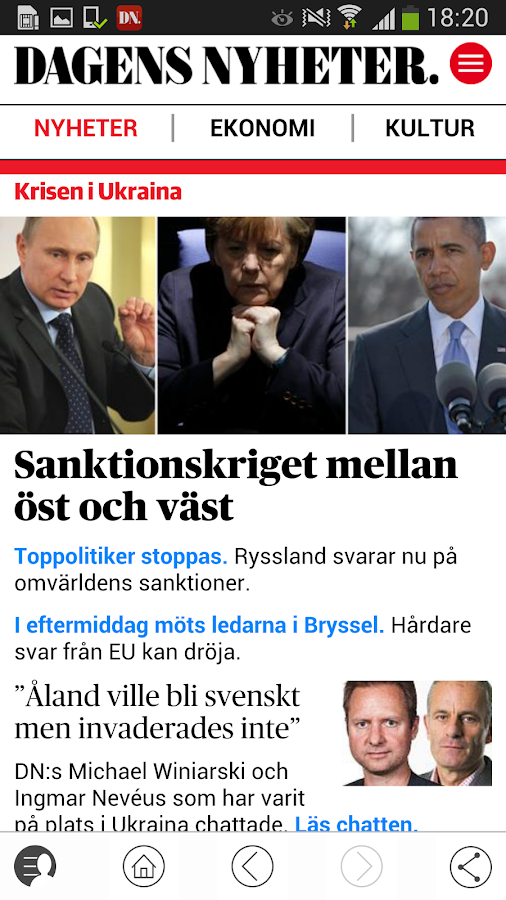 Dagens Nyheter app - Android Apps on Google Play from lh6.ggpht.com 216,466 likes · 14,322 talking about this. I dagens nyheter hittar du de avgörande historierna om vår tid och blir uppdaterad om de senaste nyheterna. Dagens nyheter has long been noted for its thorough coverage of the arts, foreign news, and domestic political news. It offers national and international coverage on various areas such as news, economy, sports, culture, weather, arts and entertainment, and more. I intervjuer, essäer och i krönikeform berättar vi om dagens mest intressanta personer och angelägna tendenser. Det senaste om dagens nyheter. Dagens nyheter monitors and highlights in politics, culture, business, sports and finance. The latest tweets from @dagensnyheter